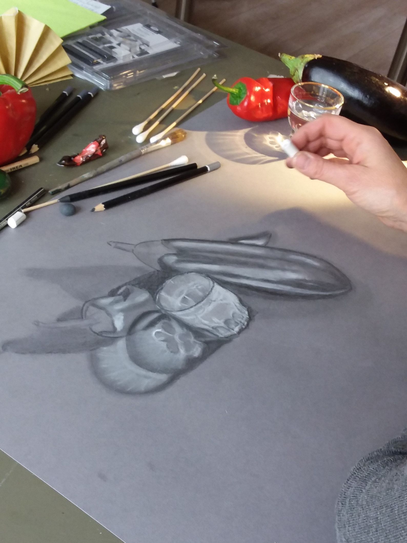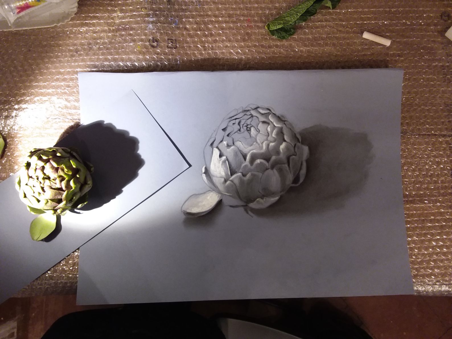 Dessin 3D; simplement avec quelques crayons, une craie , un papier cartonné et la douceur des traits feront naître des objets, des fruits, en 3 dimensions, STAGE d'une demi journée ou plus si comme moi vous adorez la magie du dessin, à Milan et en Belgique.