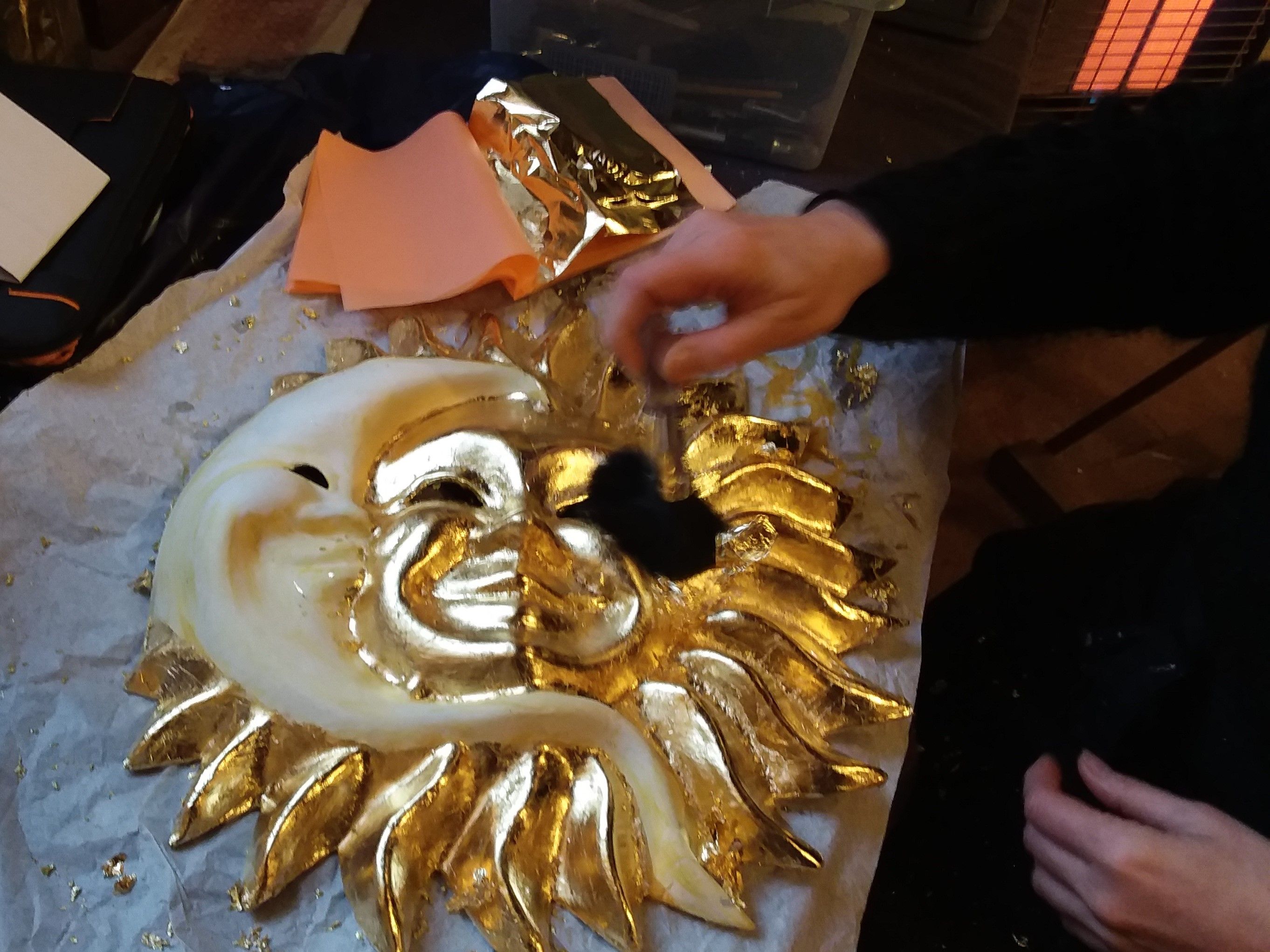 Stage one day; est une journée de cours dorure à l'huile sur support de votre choix, masque ou objets divers, ce stage est intensif et ludique , il offre aux personnes en vacances ou de passage une immersion totale dans l'univers de la création, commence à 10h matin et se termine..... MES STAGES SE TERMINENT SOUVENT AVEC UN VERRE DE VIN, HISTOIRES D'ARTISTES...