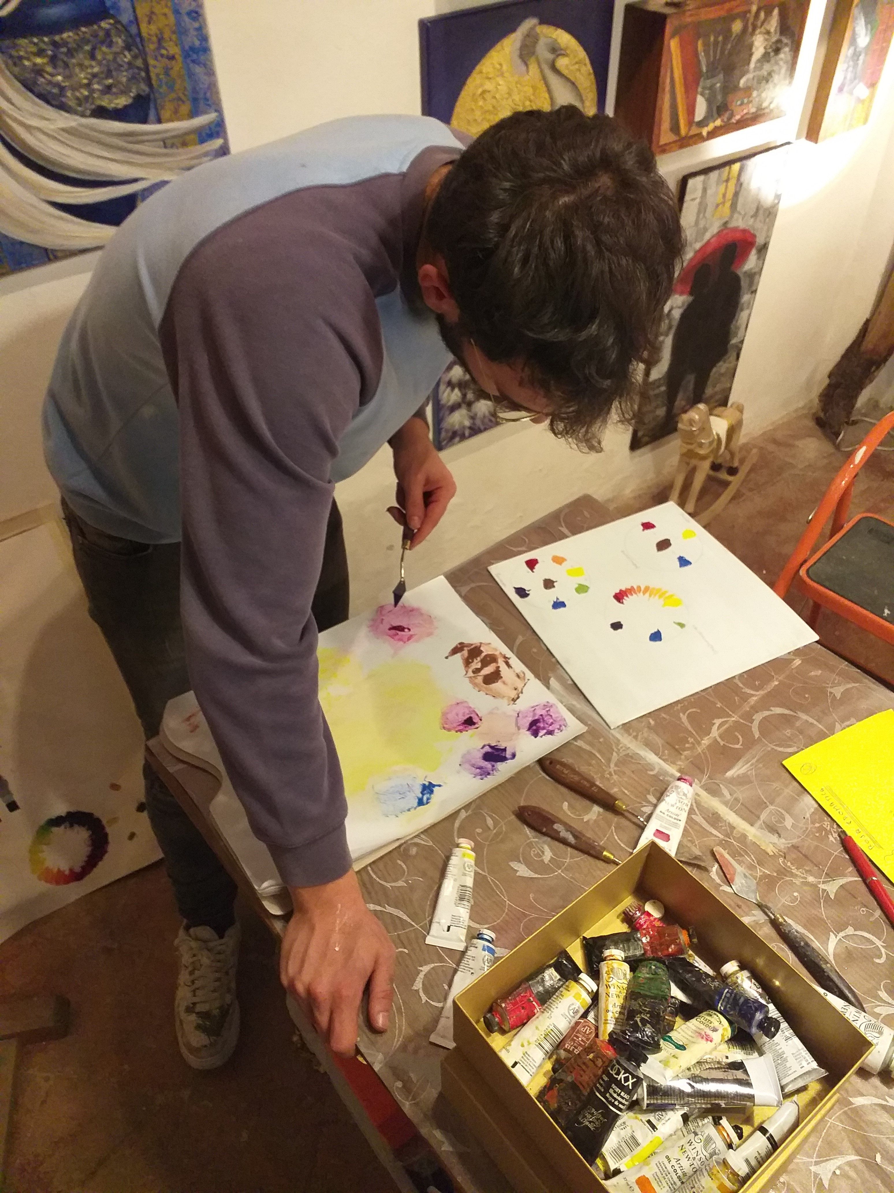 Stage de couleurs, études des couleurs; création d'un cercle chromatique, mélanges et contrastes, peinture à l'huile, comment positionner la couleur sur la palette, souvent boudé ce passage est pourtant élémentaire et incontournable pour l' épanouissement du peintre, un jour pour les bases , un autre pour la mise en couleur d'un paysage en noir et blanc, histoire de voir en couleurs! STAGE DE 2 JOURS en Italie (Milan) ou en Belgique (Anthisnes), de 10h à 13h et de 14h à 16h30.